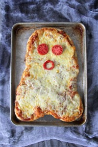This year I created this ghost pizza for my little trick or treaters…it made the kids smile and get excited for their night of candy collecting! It’s a fun way to send them off trick or treating!