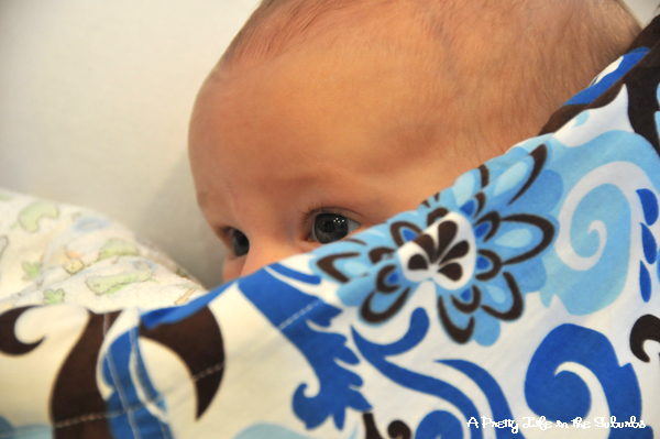 So when I saw this sling, I knew I had to have it! Loved the colours. Loved the pattern. Loved everything about it! For the first 16 weeks this is where baby hung out! But around 16 weeks, he just didn’t dig it anymore and into the Snugli he went, and the sling went into the back of the closet.